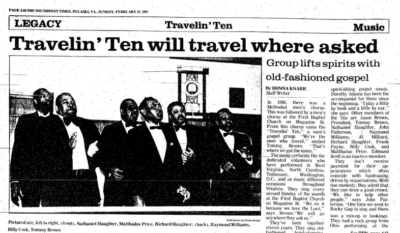 Document historic Black gospel traditions by collecting materials related to gospel groups, choirs, church services, and musical performances across Appalachian Virginia
